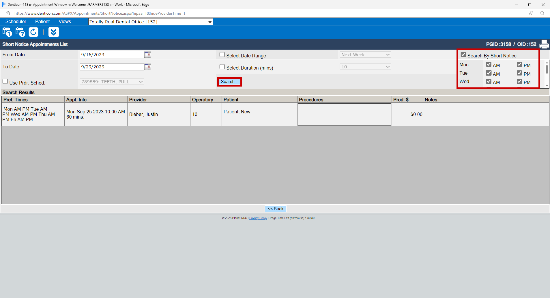 To locate the appointments which are marked as “Short Notice” availability: