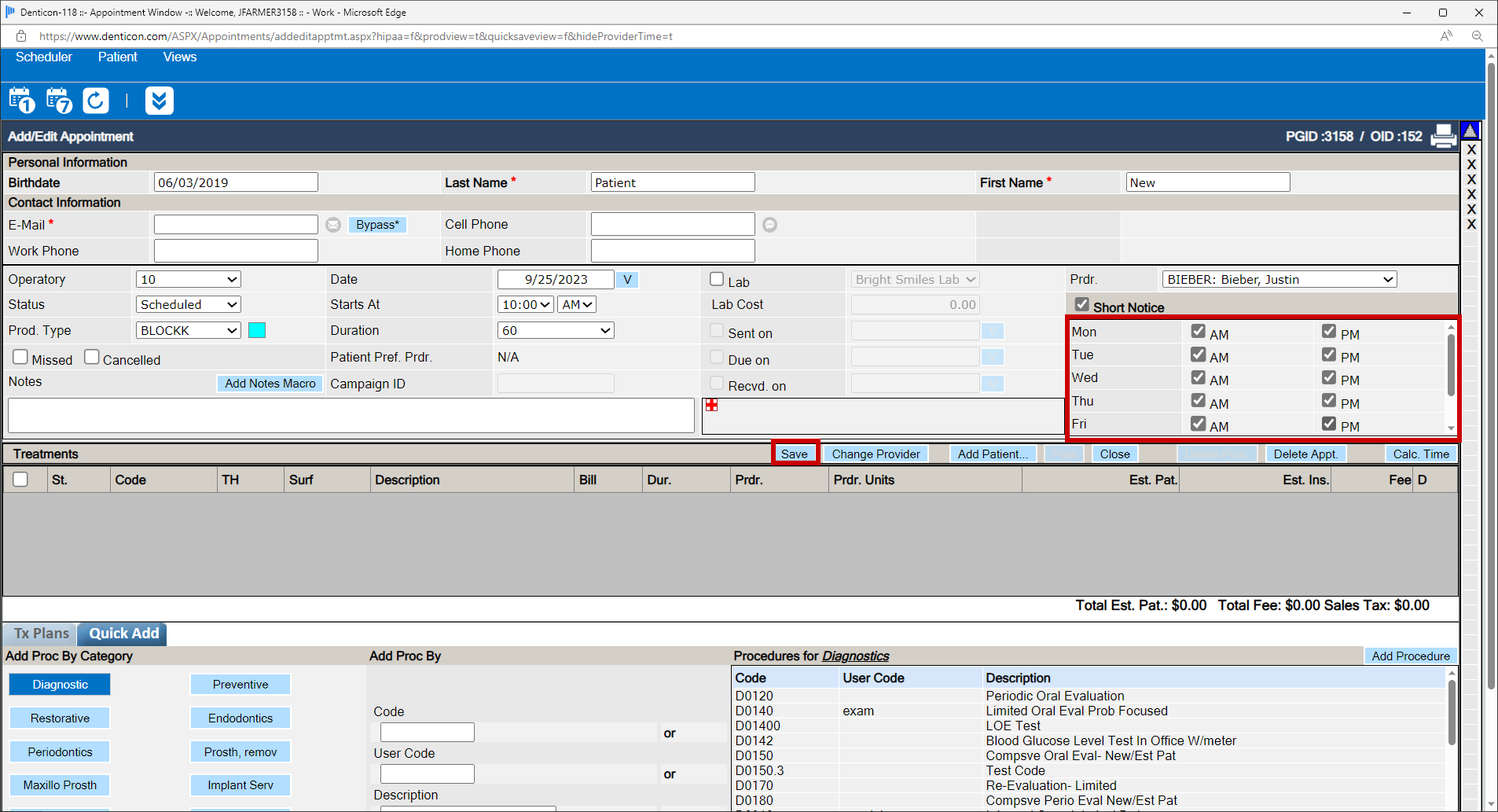 - Place a checkmark in the patient’s preferred day segment(s)